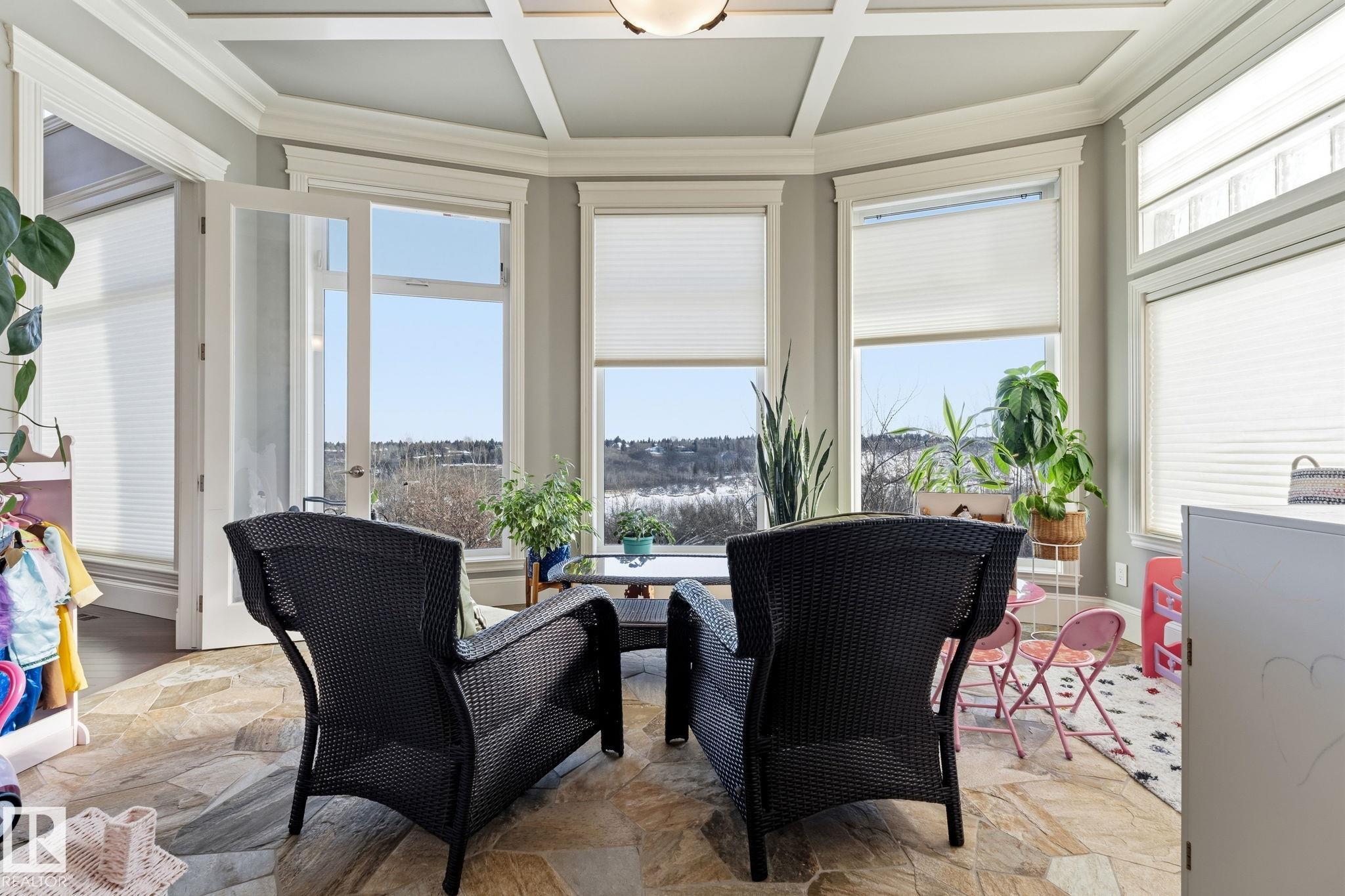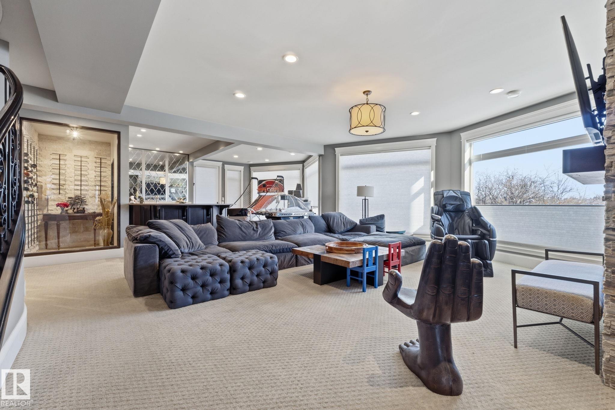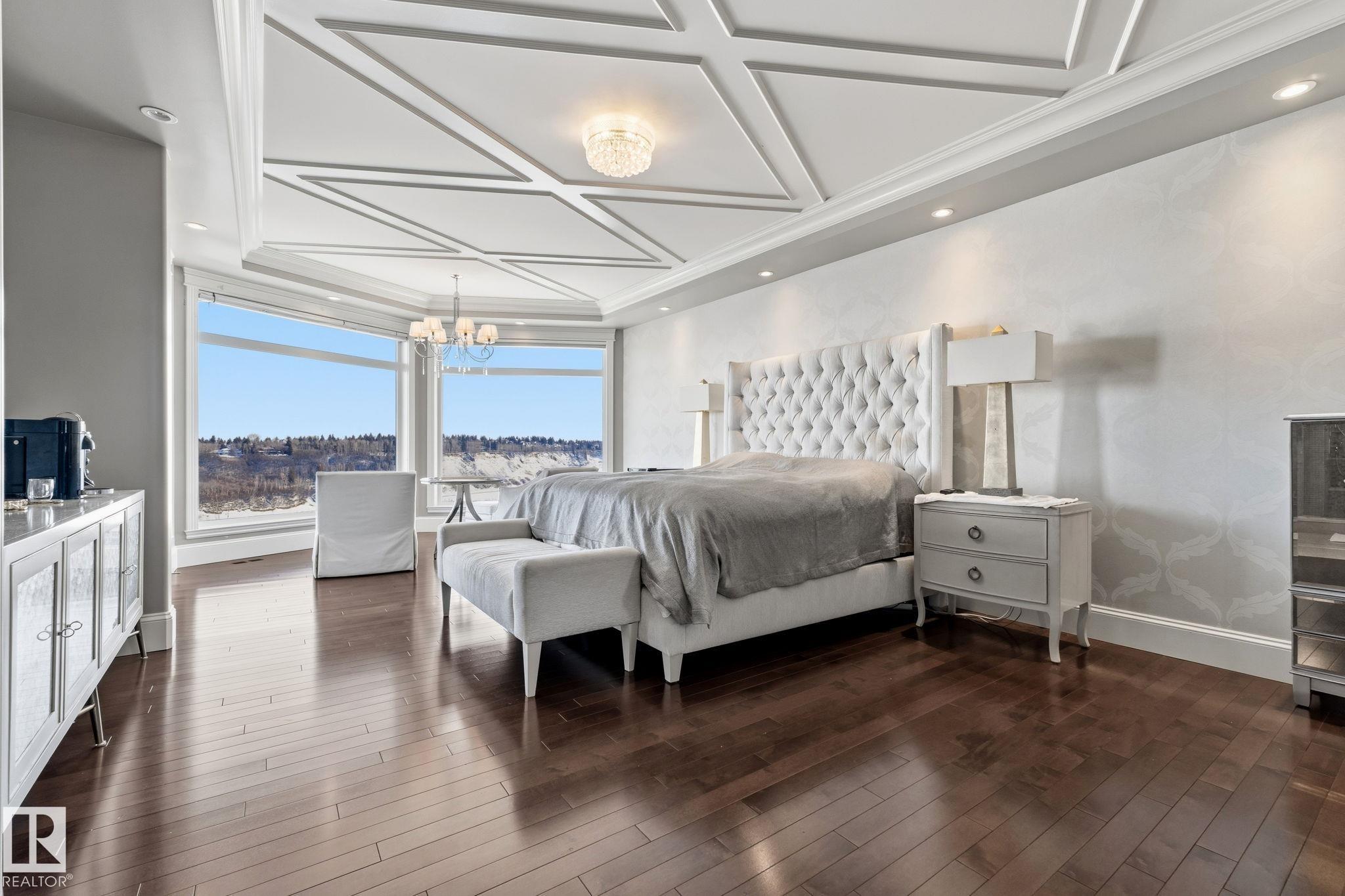 Introducing an extraordinary river valley estate, offering 7,500 sq ft of exquisitely crafted living space & river valley views like no other. With 7 bdrms, office & 9 baths, this home delivers uncompromising space, privacy & refined style for family & guests. Main floor impresses w/soaring ceilings, a palatial staircase & comfy family room, sundrenched atrium & professional office. A dream kitchen is a focal point & heart of the home. Upstairs, be captivated by 4 lavish bedrooms, each complete w/its own ensuite & walk-in closet, while the primary suite serves as a private retreat featuring a spa-inspired ensuite & an expansive custom closet. The walkout basement w/9 ft. ceilings is designed for elevated living, showcasing a sophisticated wine room & bar, a private theatre w/seating for 12 & an exceptional home gym. Surrounded by natural beauty & just steps from the Edmonton Golf & Country Club & Wolf Willow Ravine, this residence is a true sanctuary defined by elegance, regal scale & unparalleled views.