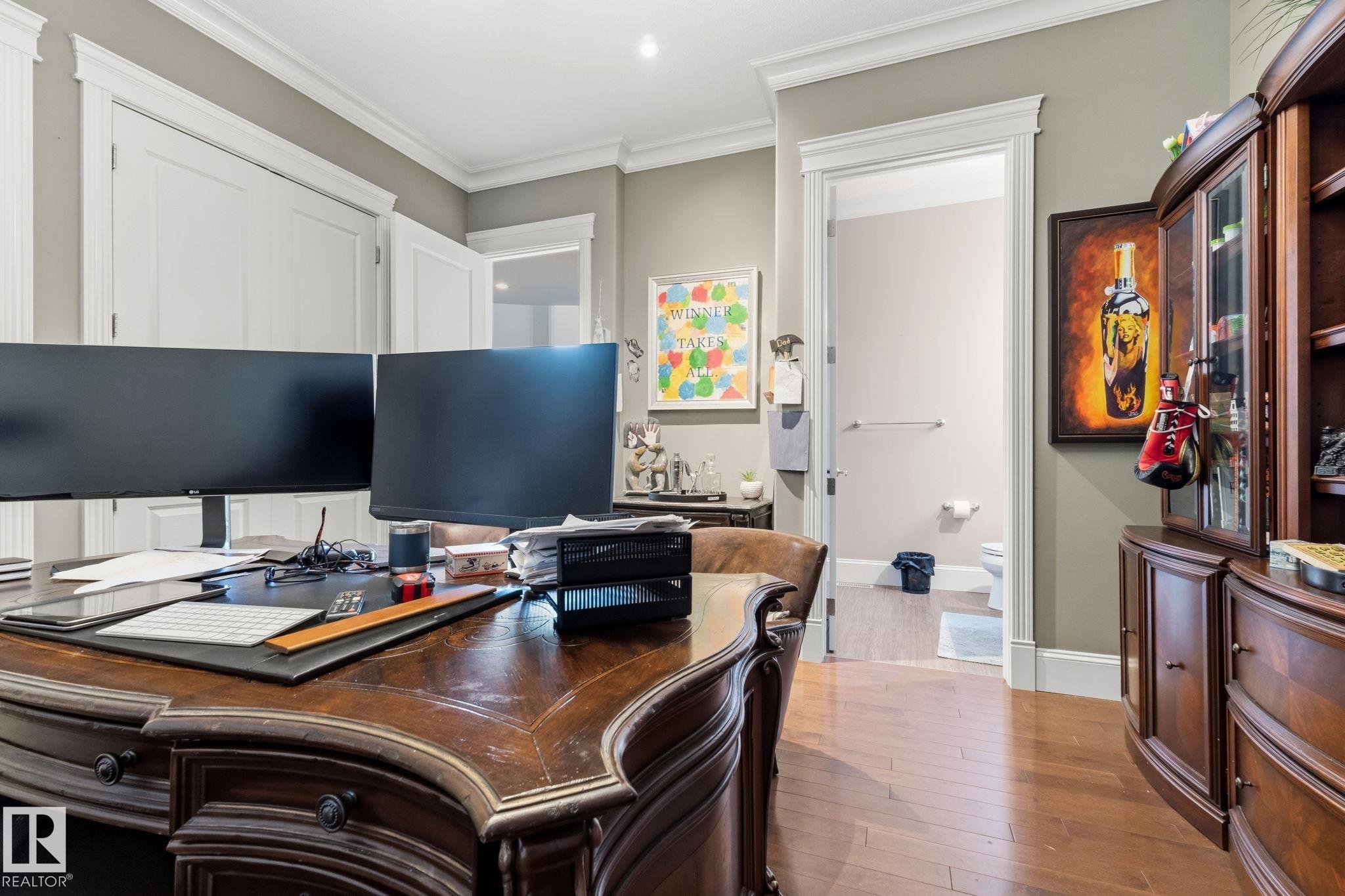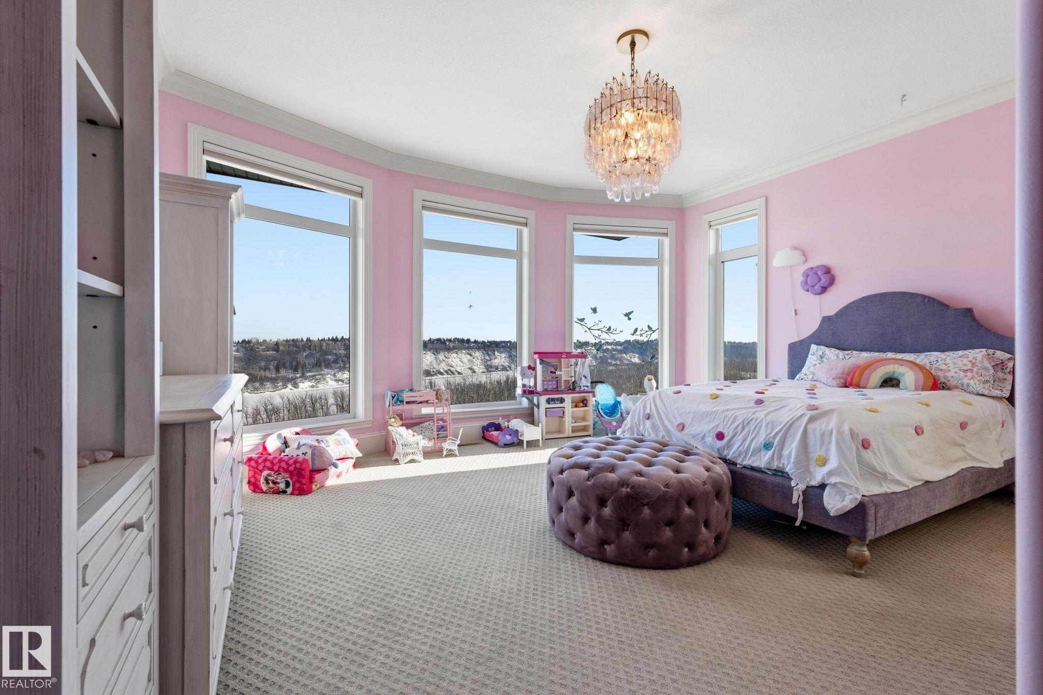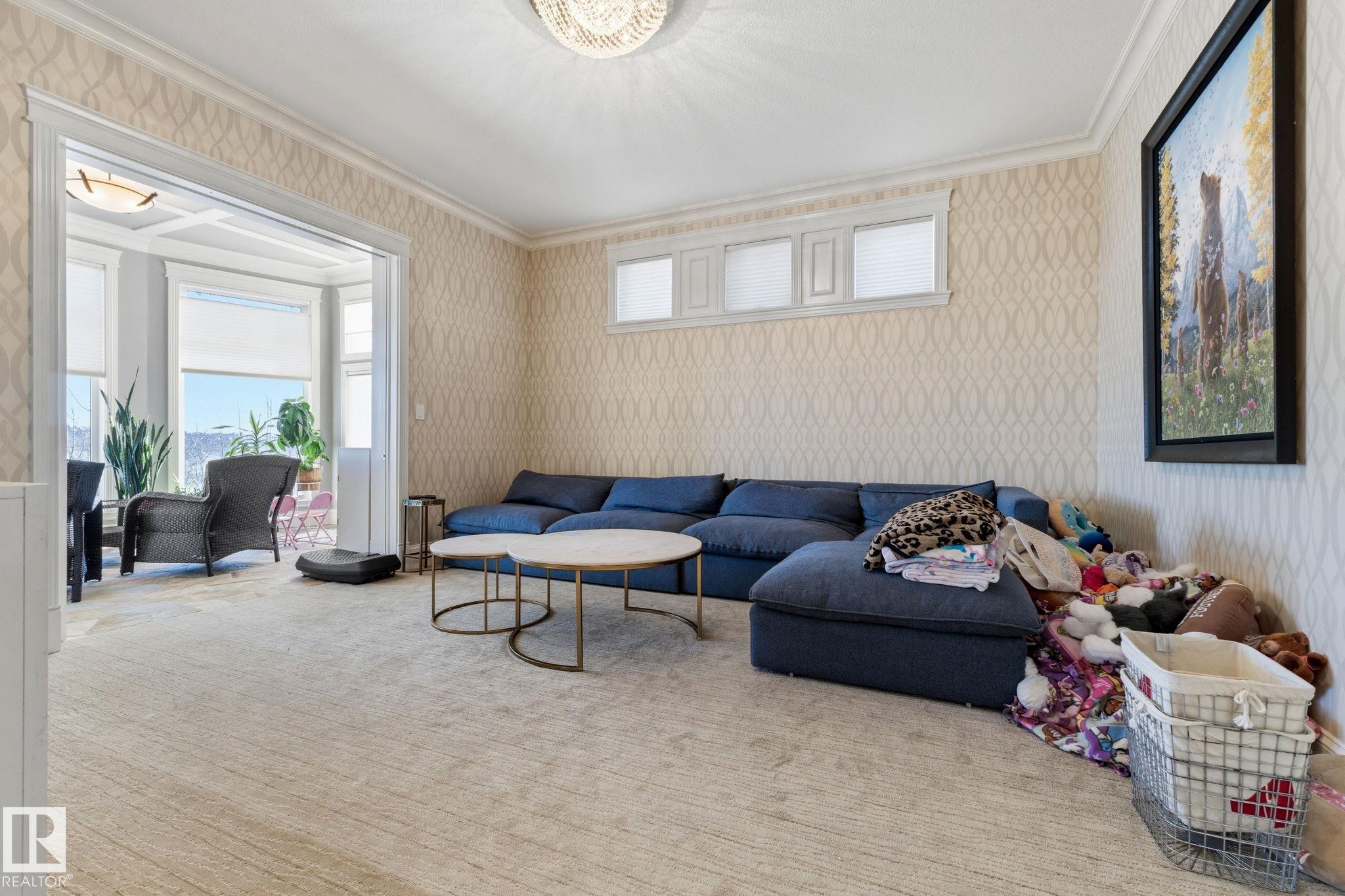 Introducing an extraordinary river valley estate, offering 7,500 sq ft of exquisitely crafted living space & river valley views like no other. With 7 bdrms, office & 9 baths, this home delivers uncompromising space, privacy & refined style for family & guests. Main floor impresses w/soaring ceilings, a palatial staircase & comfy family room, sundrenched atrium & professional office. A dream kitchen is a focal point & heart of the home. Upstairs, be captivated by 4 lavish bedrooms, each complete w/its own ensuite & walk-in closet, while the primary suite serves as a private retreat featuring a spa-inspired ensuite & an expansive custom closet. The walkout basement w/9 ft. ceilings is designed for elevated living, showcasing a sophisticated wine room & bar, a private theatre w/seating for 12 & an exceptional home gym. Surrounded by natural beauty & just steps from the Edmonton Golf & Country Club & Wolf Willow Ravine, this residence is a true sanctuary defined by elegance, regal scale & unparalleled views.