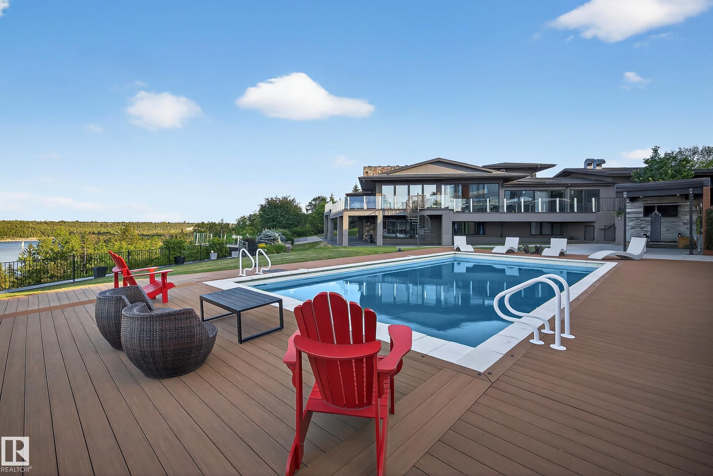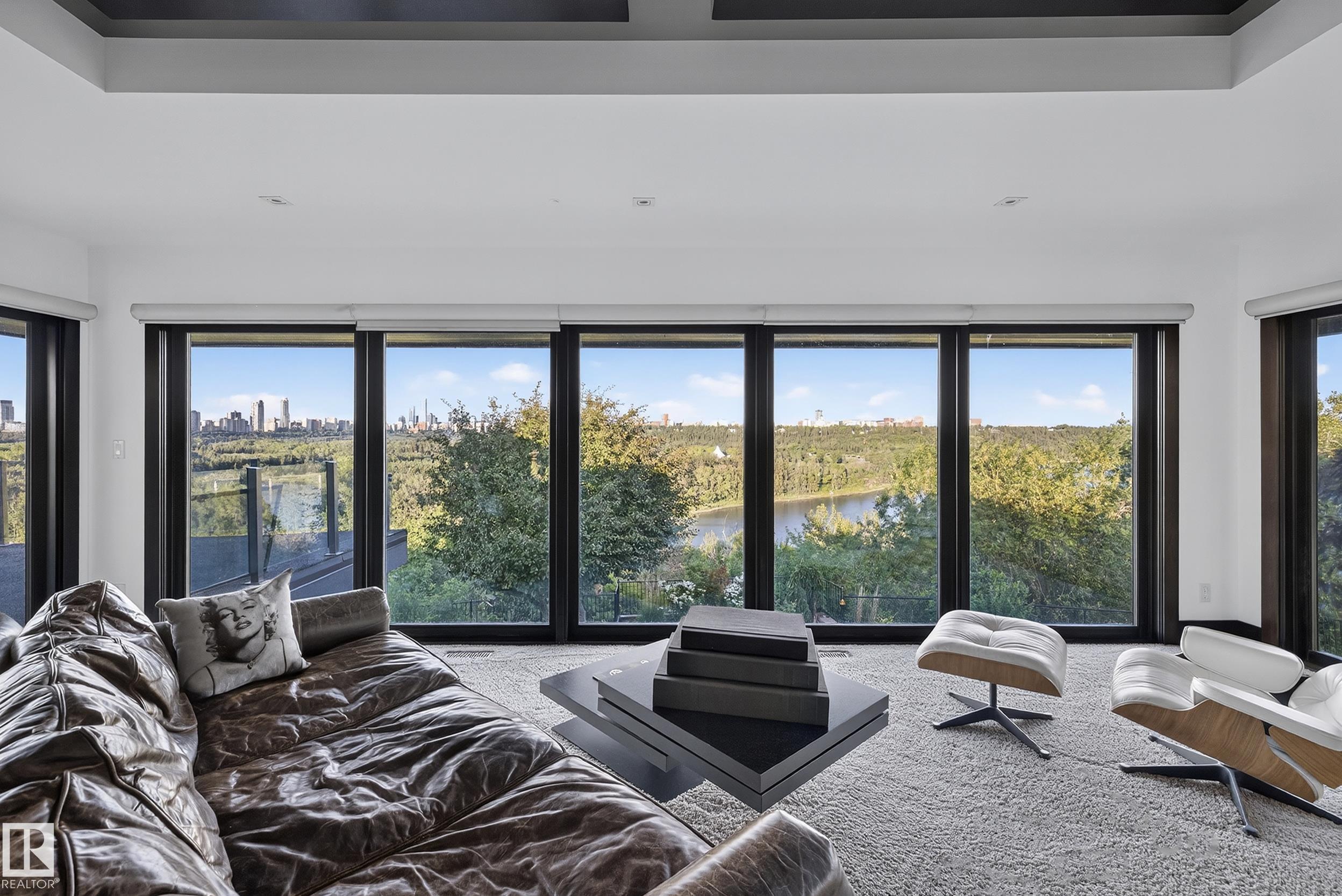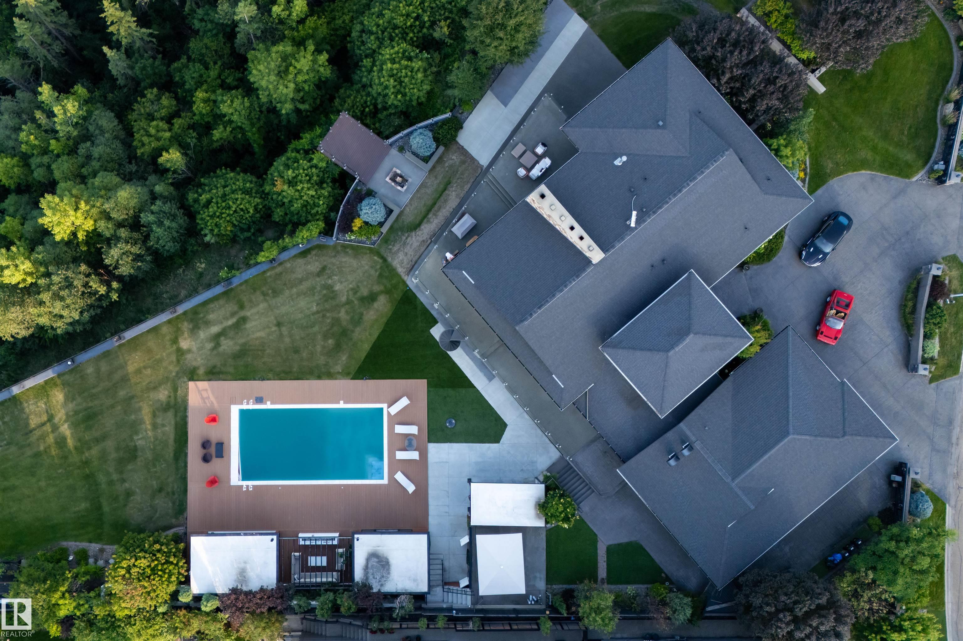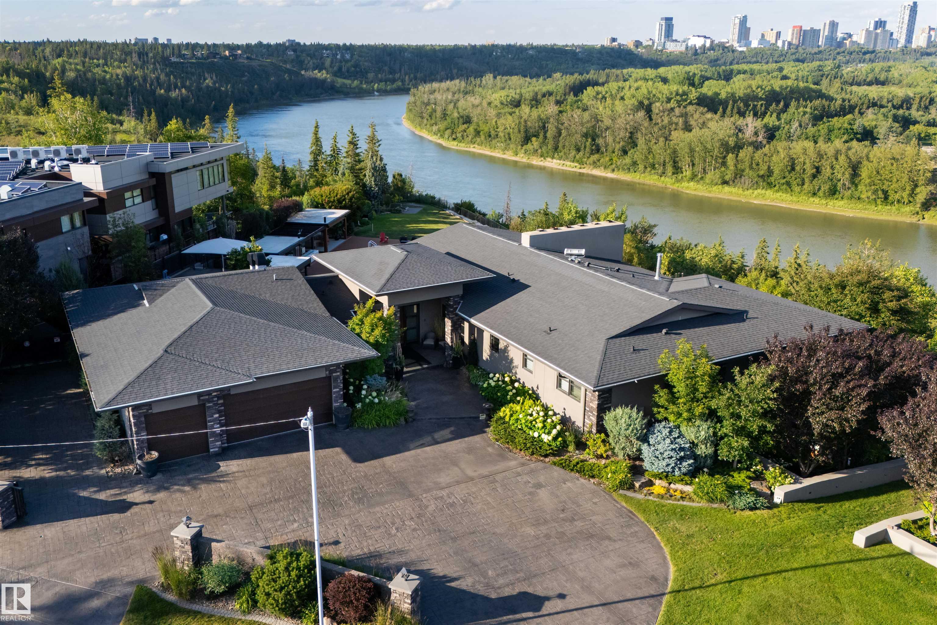 An iconic address with world-class views. Welcome to 13758 Valleyview Drive. Set on an extraordinary 49,000+ sq ft lot with unobstructed panoramic views of downtown Edmonton and the river valley, this custom-built estate offers over 6,500 sq ft of elevated living. Every detail has been crafted for luxury, from the grand chef’s kitchen and open-concept living spaces to the expansive main deck designed for upscale entertaining. Nearly every room captures breathtaking vistas. The upper level is anchored by a lavish primary retreat with spa-like ensuite, boutique-style walk-in closet, sitting lounge, and wet bar. The walkout basement features a private theatre, billiards room, wet bar, office, and guest suite. Step outside to your resort-style backyard with a spectacular in-ground pool and mature landscaping. A rare opportunity on one of Edmonton’s most prestigious streets.