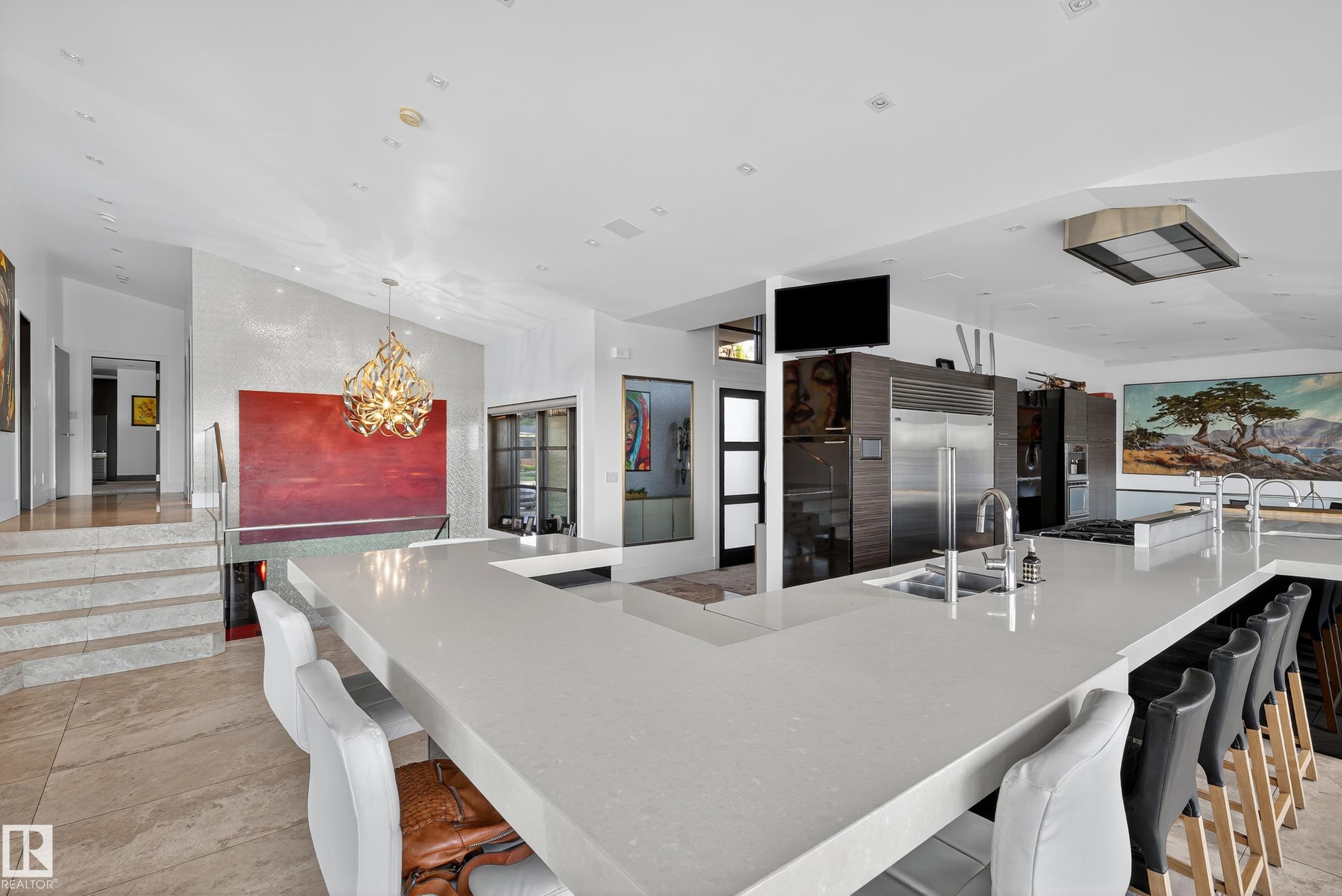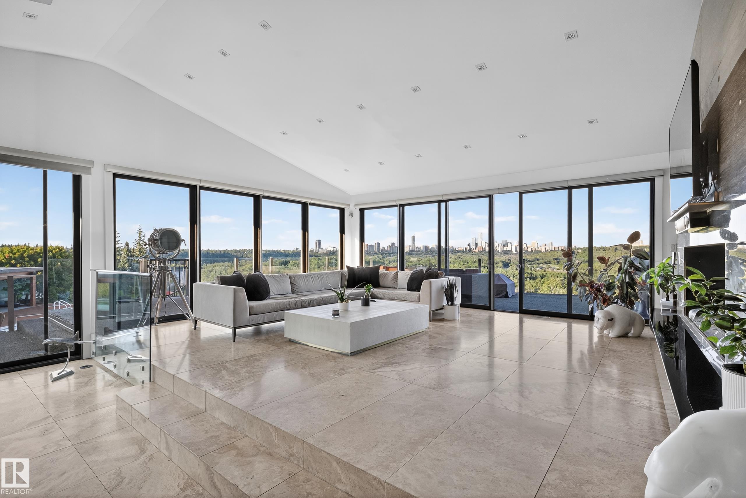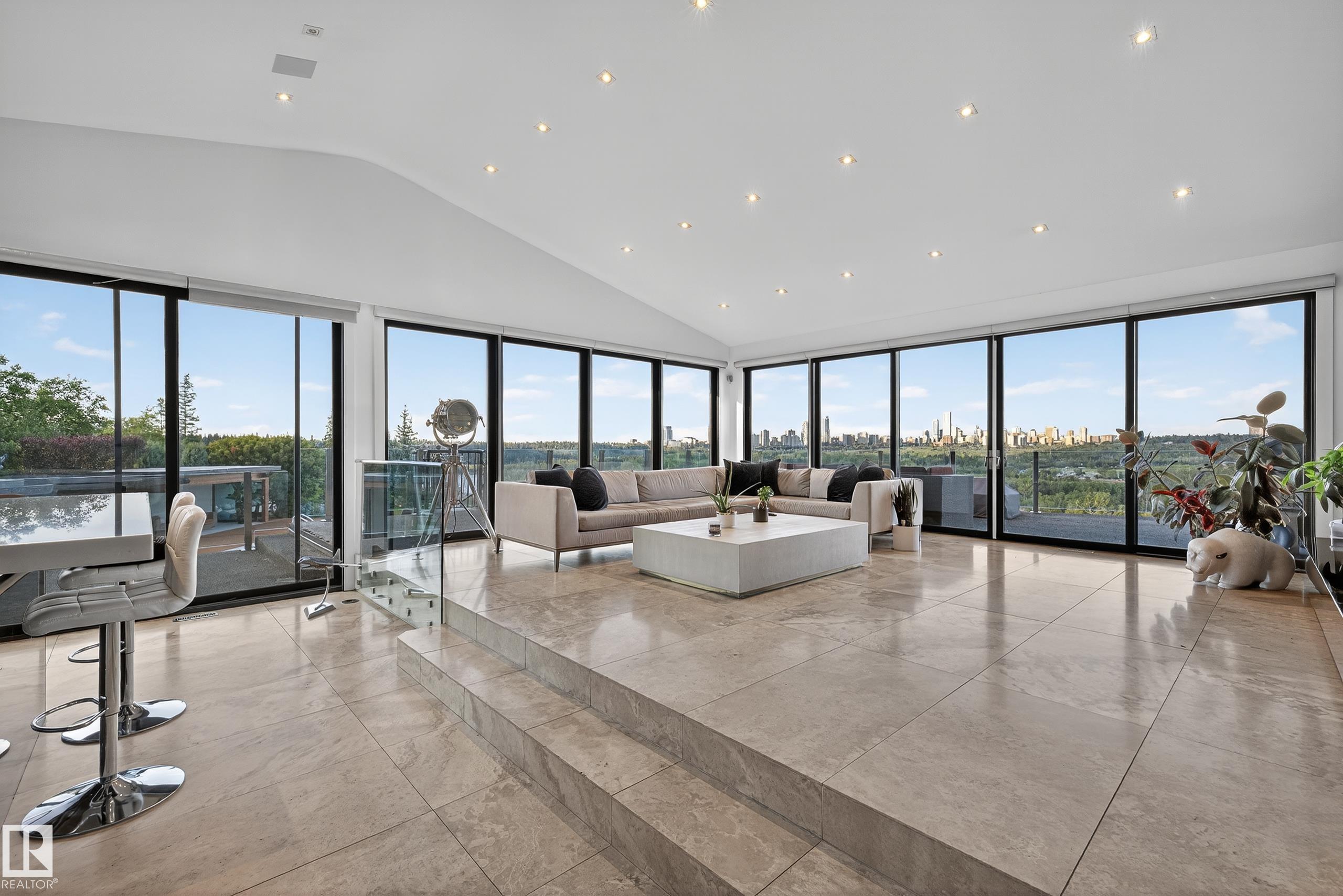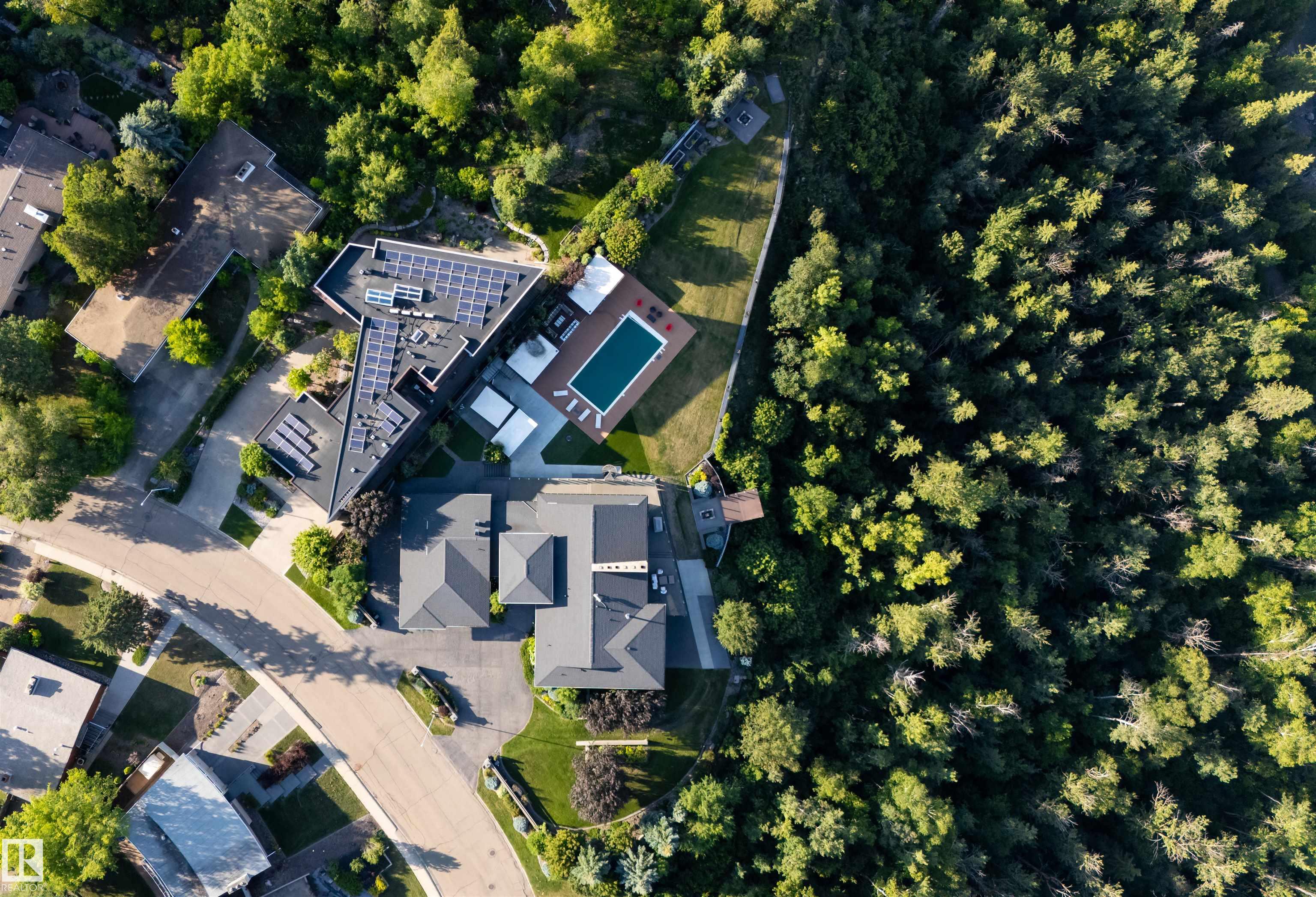 An iconic address with world-class views. Welcome to 13758 Valleyview Drive. Set on an extraordinary 49,000+ sq ft lot with unobstructed panoramic views of downtown Edmonton and the river valley, this custom-built estate offers over 6,500 sq ft of elevated living. Every detail has been crafted for luxury, from the grand chef’s kitchen and open-concept living spaces to the expansive main deck designed for upscale entertaining. Nearly every room captures breathtaking vistas. The upper level is anchored by a lavish primary retreat with spa-like ensuite, boutique-style walk-in closet, sitting lounge, and wet bar. The walkout basement features a private theatre, billiards room, wet bar, office, and guest suite. Step outside to your resort-style backyard with a spectacular in-ground pool and mature landscaping. A rare opportunity on one of Edmonton’s most prestigious streets.